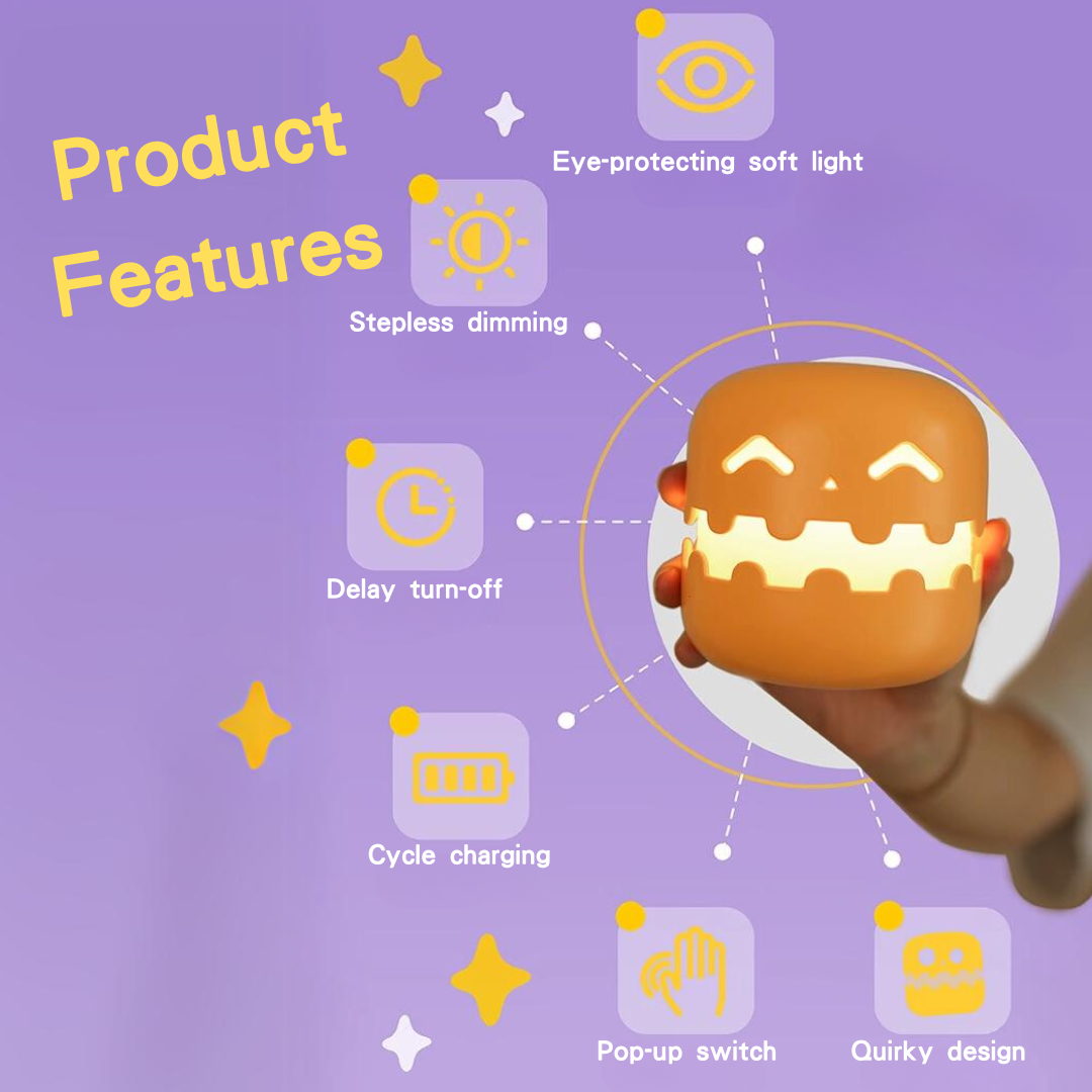 The pumpkin night light adds a fun touch with its quirky design, bringing vitality to the room. It emits a gentle warm glow that creates a cozy atmosphere. Its unique stepless dimming feature allows for easy brightness adjustments to suit different needs. With a 30-minute delay-off function, you can sleep peacefully without worrying about the light disturbing you.